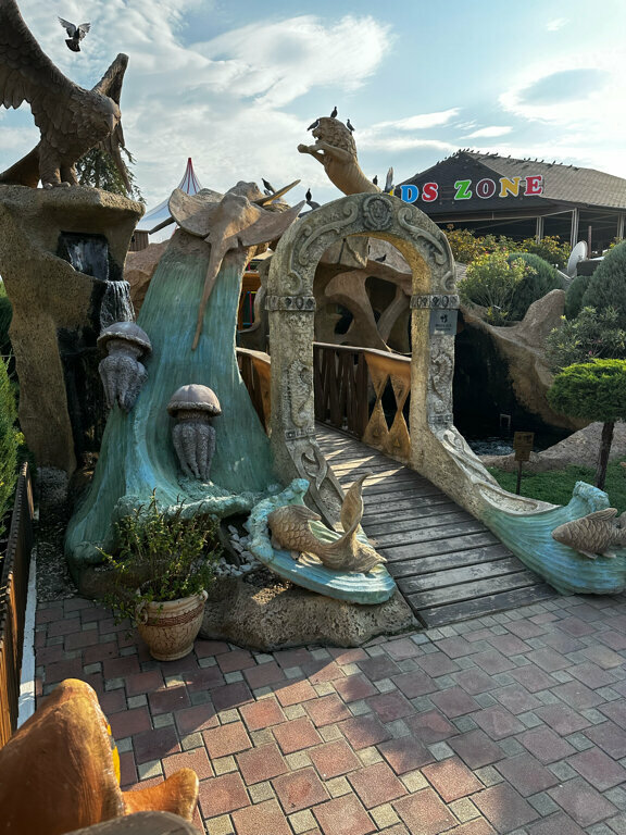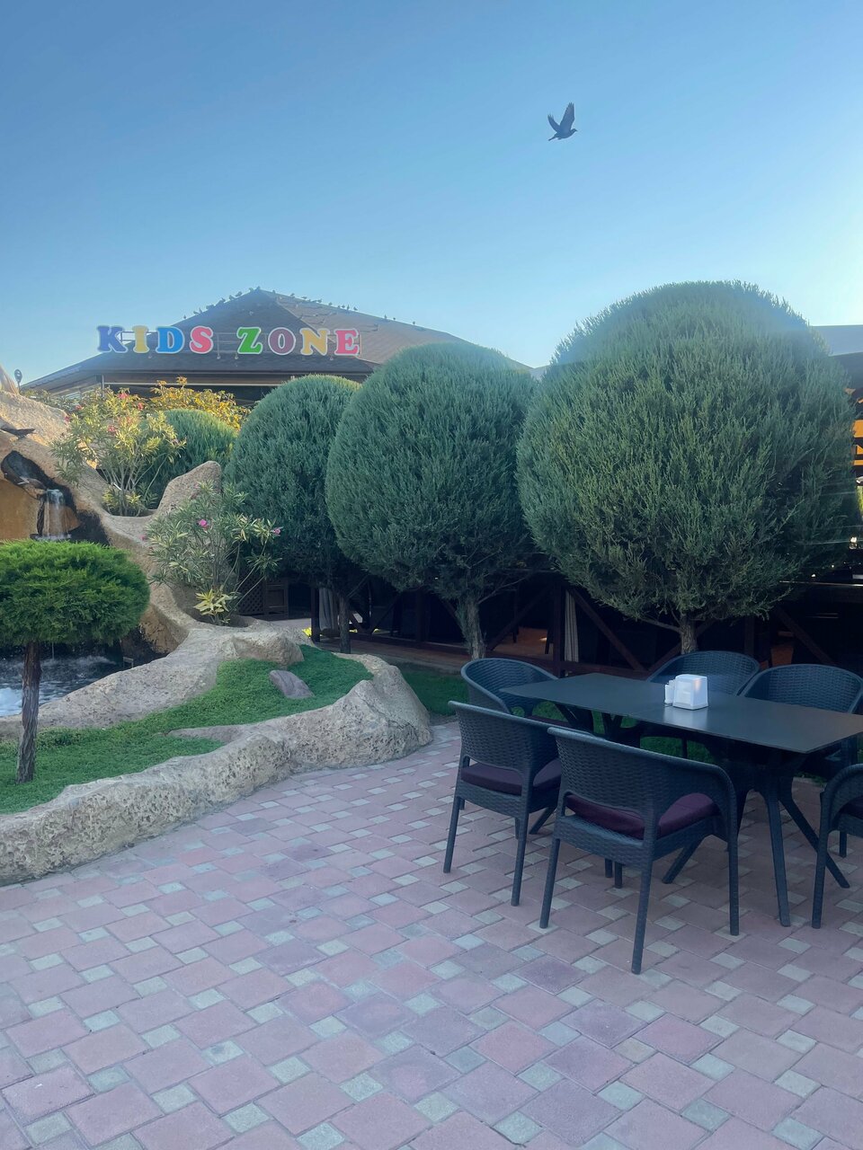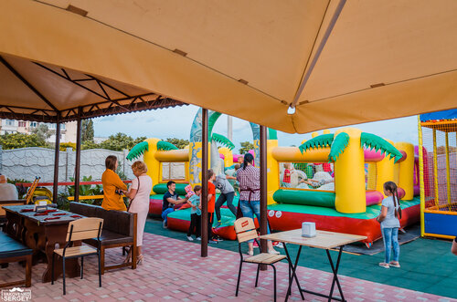 Кухня отличная! Обслуживание хорошее! Есть больша зона где детям поиграть!