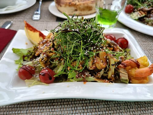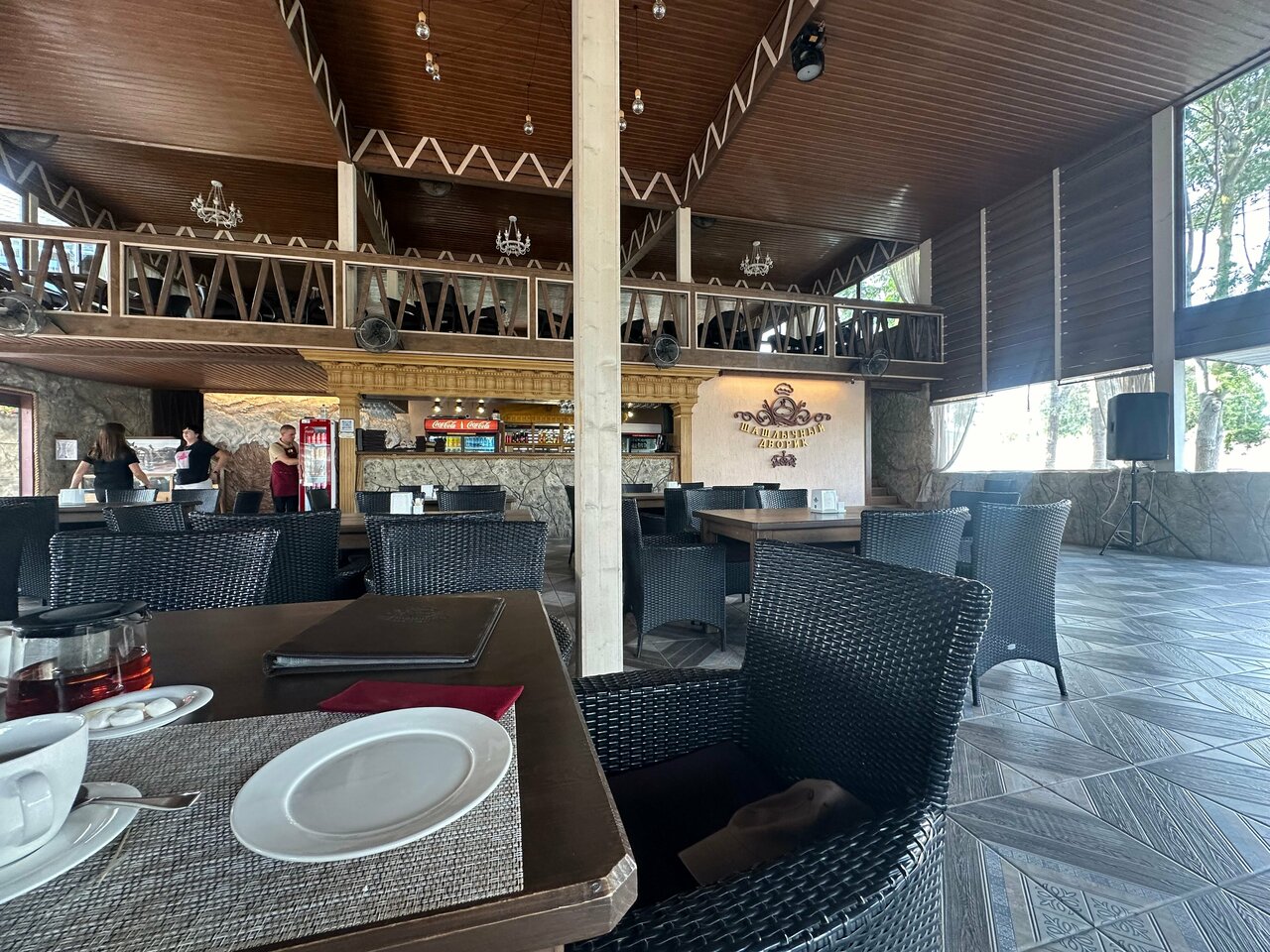 Отличное место. Блюда супер. Широкий ассортимент. Есть игровая зона для детей. Из минусов, осенью закрывается до следующего туристического сезона.
