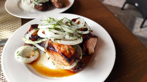 Самый вкусный шашлык который я ел в Крыму в 2025 году!!! А пожрать то я люблю!!! Да и остальное меню на ура!!! Порции большие!! Цена приемлемая! Есть и парковка и внутри места много. Удачно заехал! Буду в радиусе пары сотен км, обязательно приеду ещё !!!