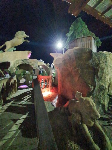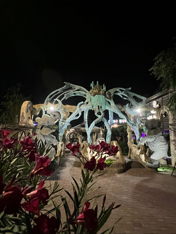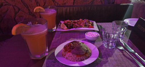 Вкусные блюда, очень вкусный фруктовый чай! Мы каждый раз приходили с детьми, дети играли в лабиринте, а мы могли относительно спокойно провести время за ужином. Атмосферно, и оставляет теплые воспоминания .